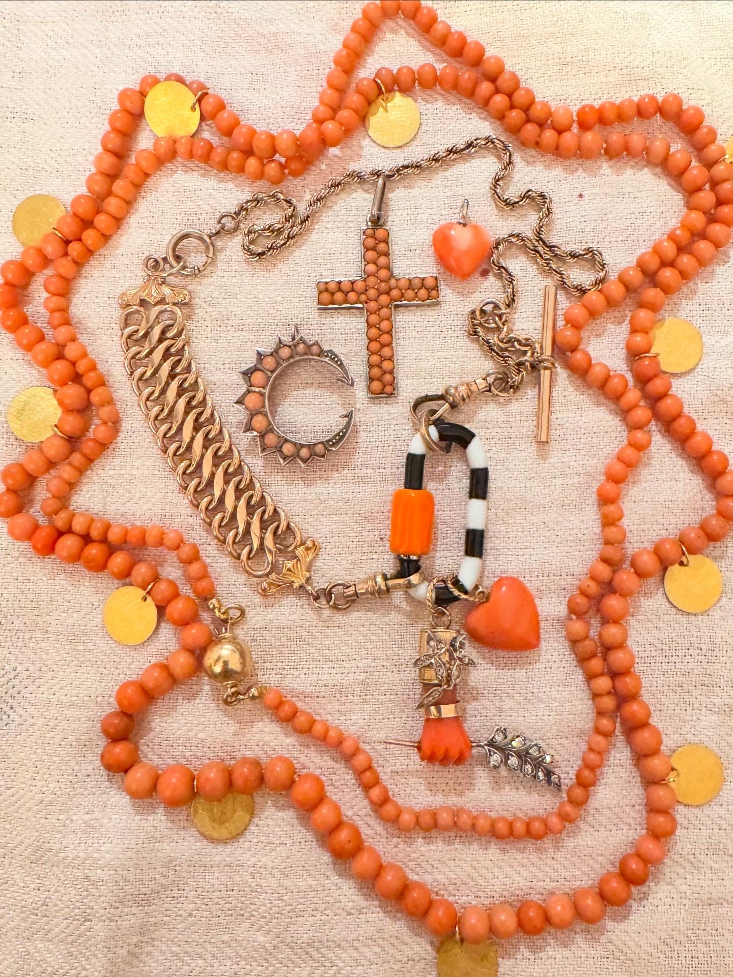 82” Long Coral + 14k Gold Necklace