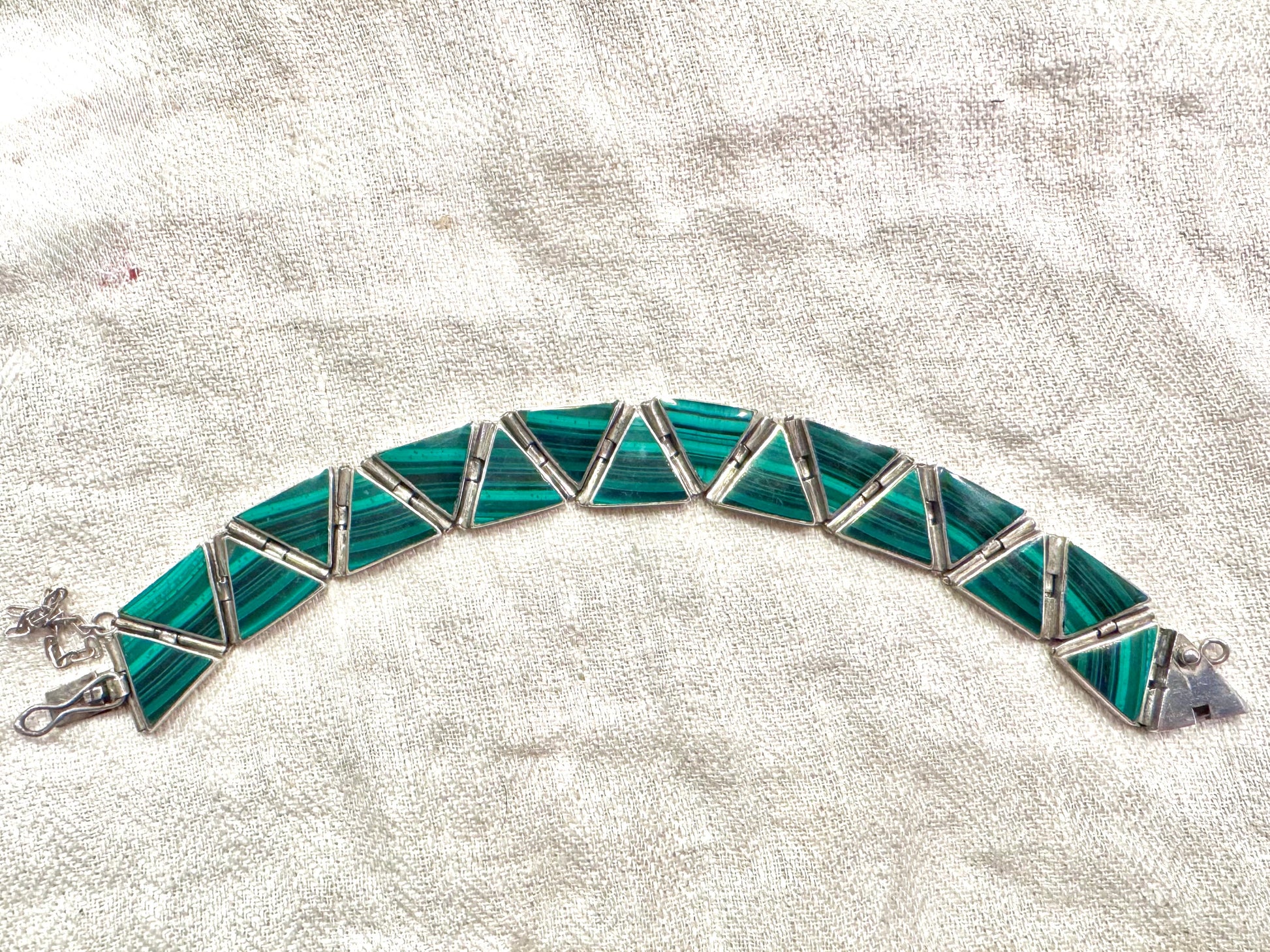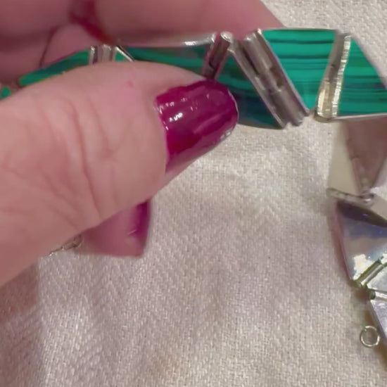 Amazing Vintage Malachite and Sterling Bracelet