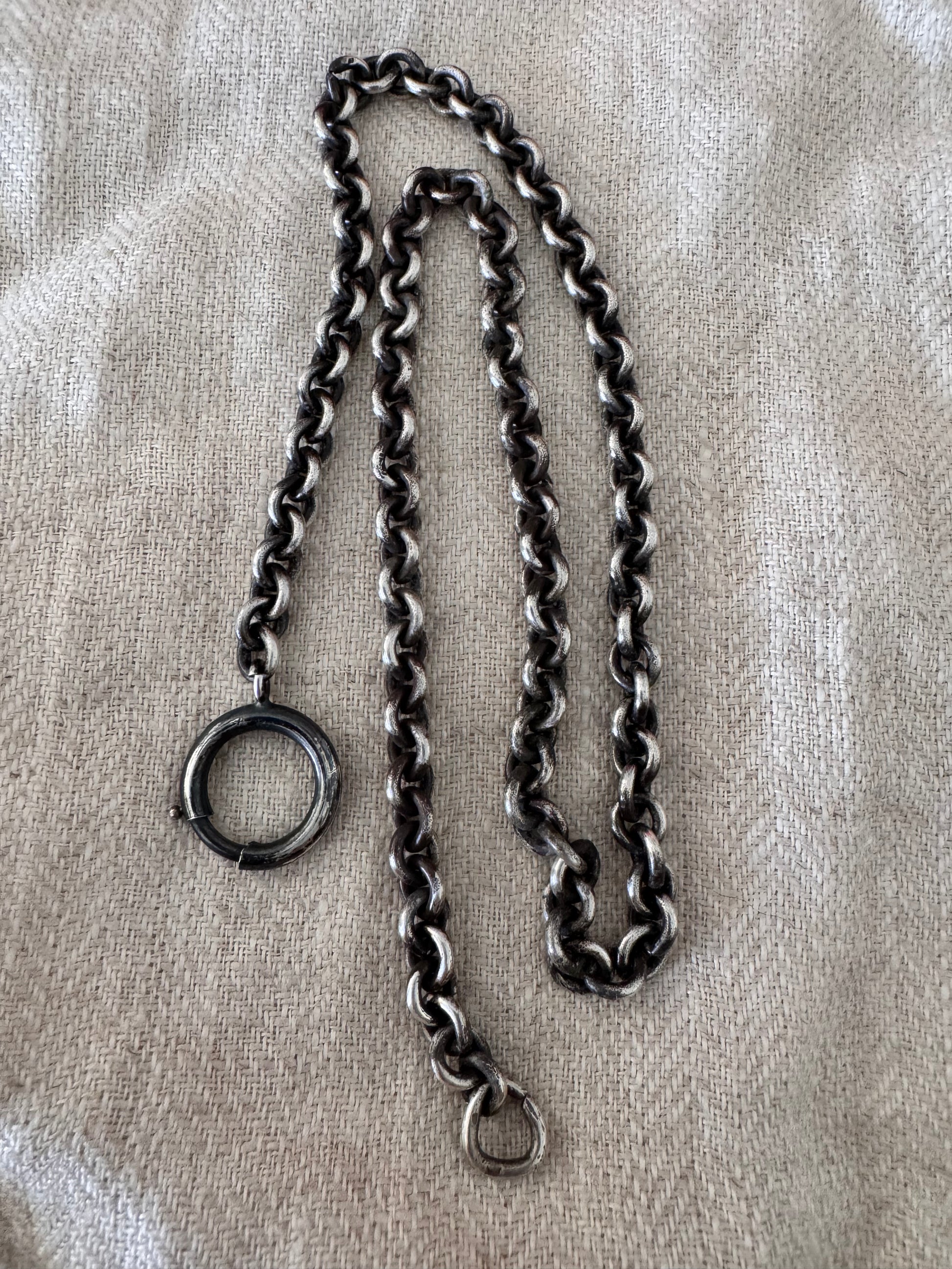 Heavy Antique Sterling Cable Chain with Huge Spring Ring