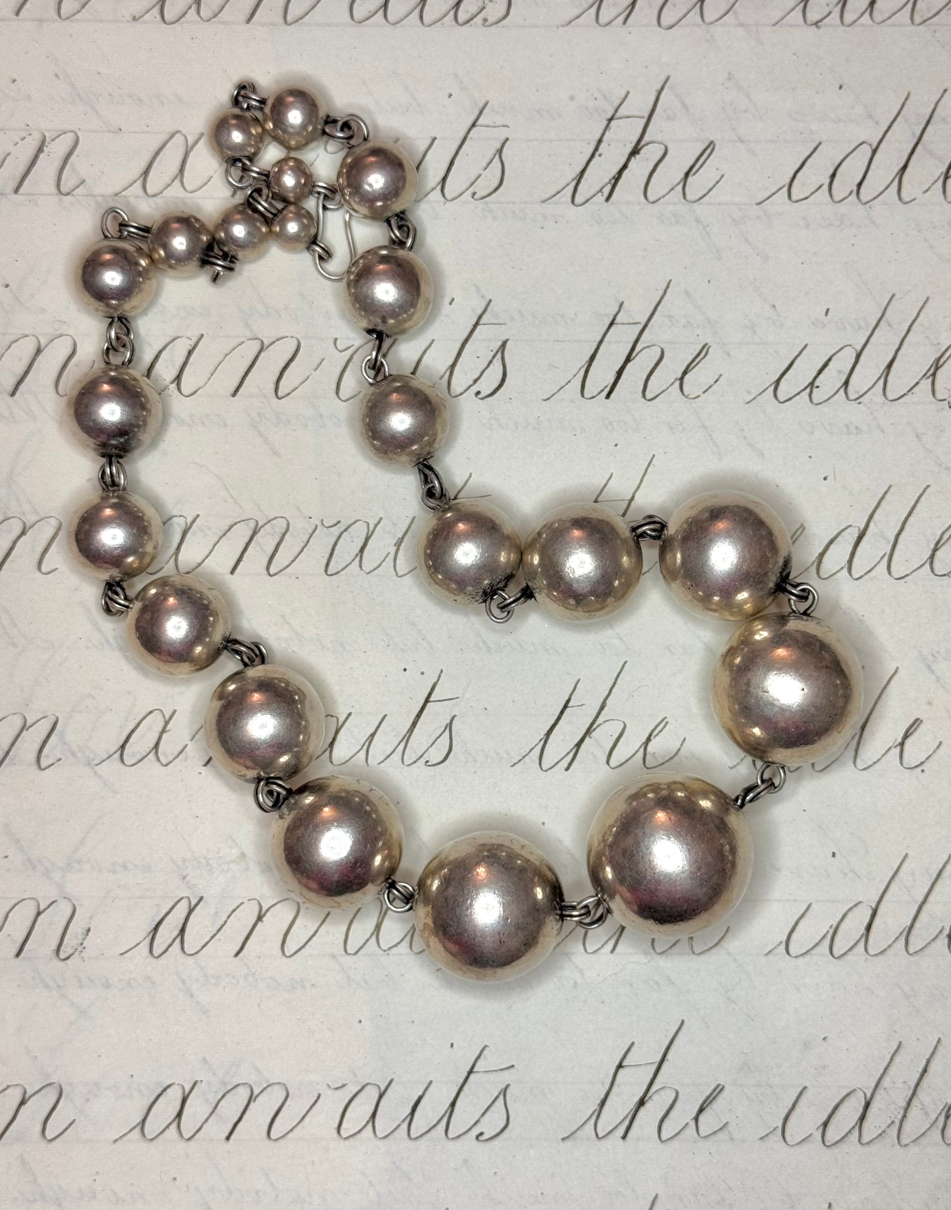 Heavy Vintage Sterling Graduate Linked Ball Bead Necklace