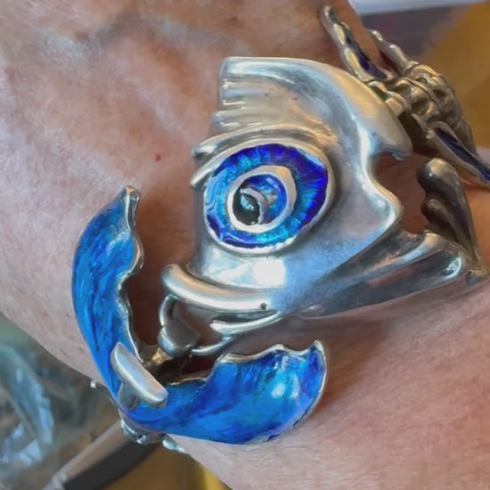 Spectacular Sterling and Enamel Fish Bone Bracelet