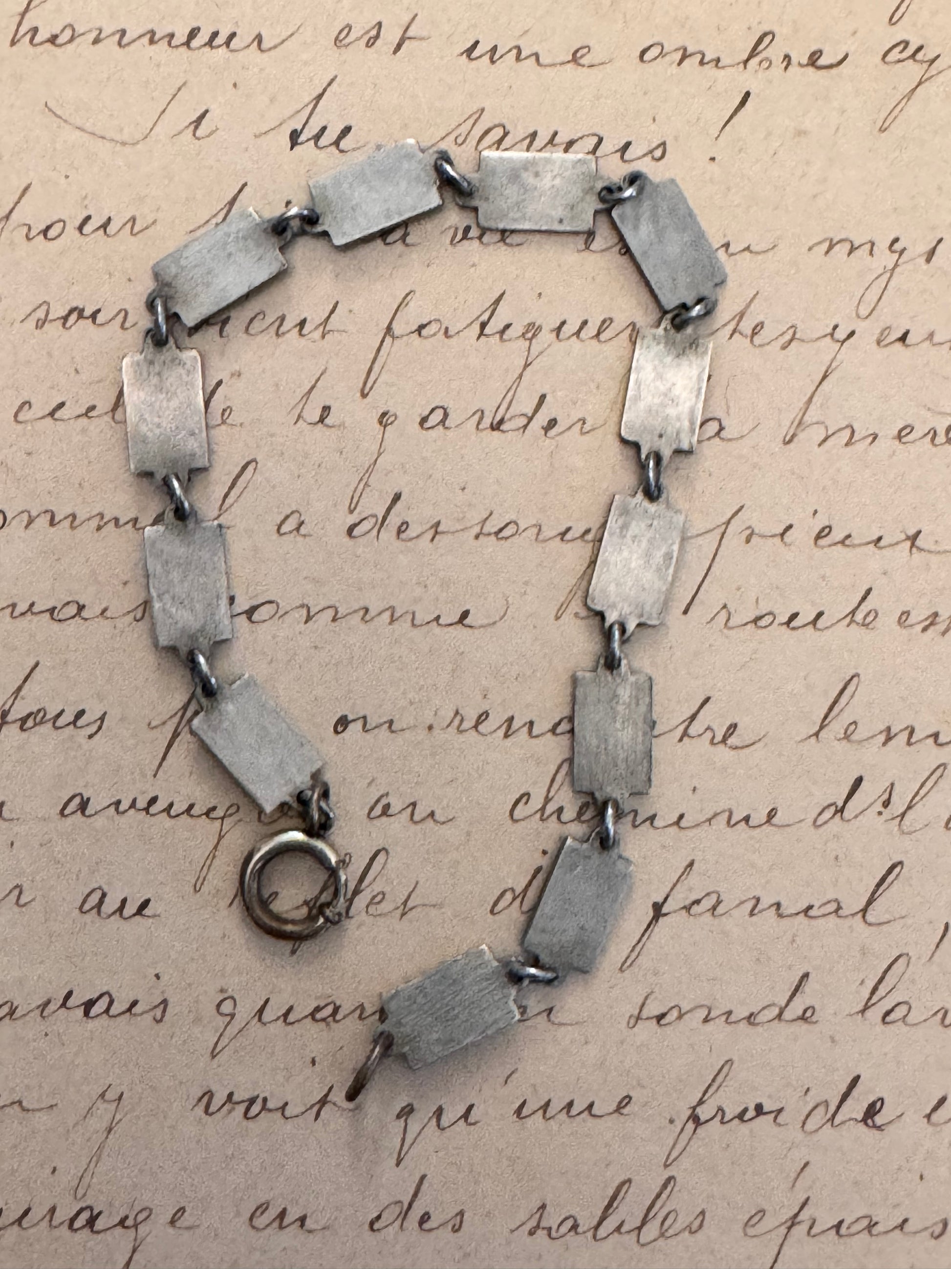 lovely vintage enamel nautical flags on low grade silver spelling out EPO HAMBURG J. The bracelet measures 7 inches including spring ring clasp - I think it must be a souvenir from a ship